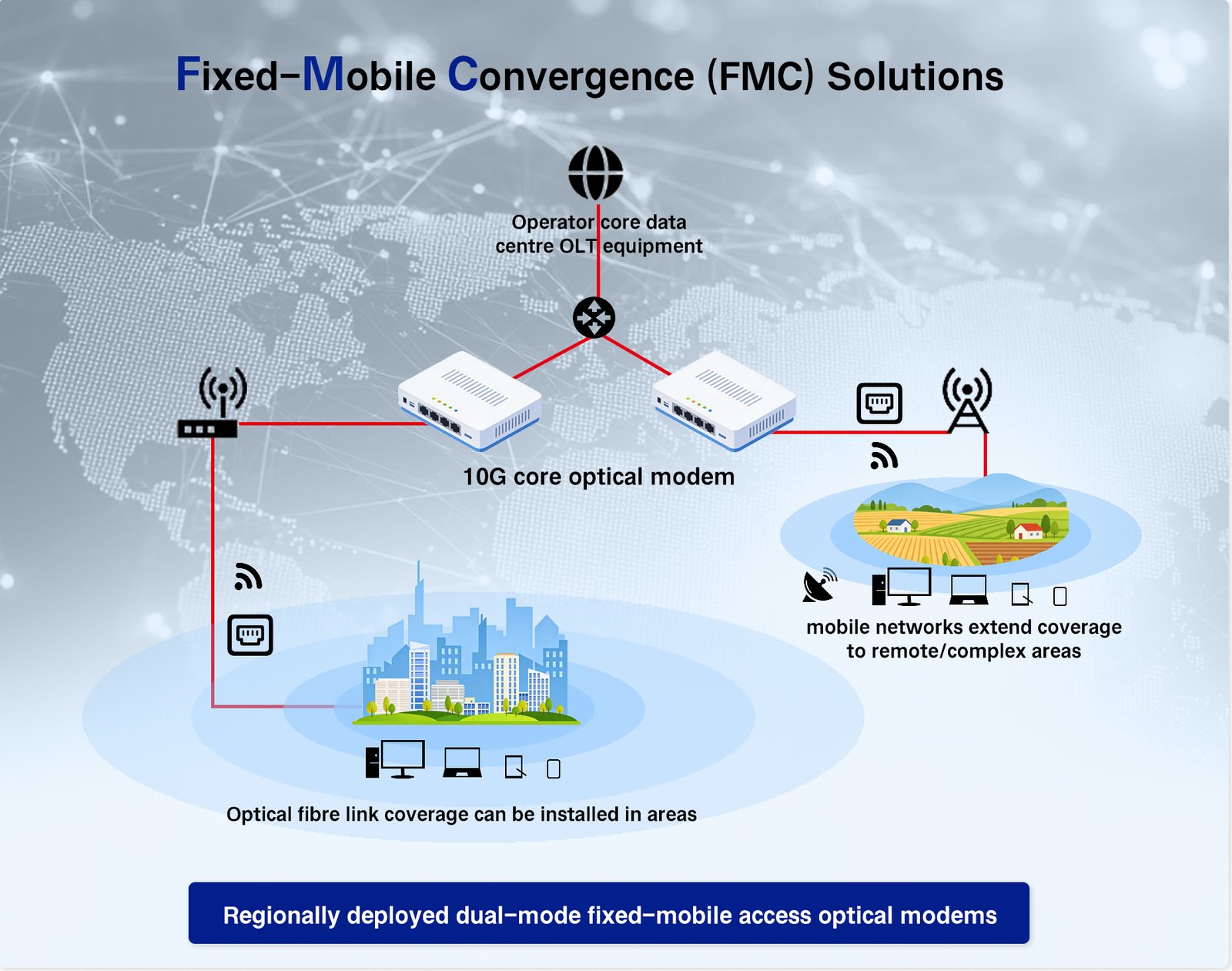 Through the integration of fixed and mobile dual -mode architecture, the limitations of traditional fixed network coverage are overcome, quickly extending broadband services to remote villages,mountainous areas and other tradlitionally hard to- reach reglons,achleving Yull- area reachable’ bradband servlce and effectively addressing coverage gaps.